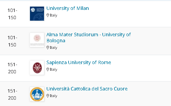 意大利留学|中-意综合类大学院校专业世界排名对比,快来看看你心仪的它排第几?