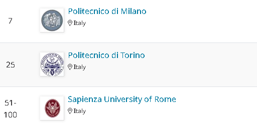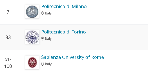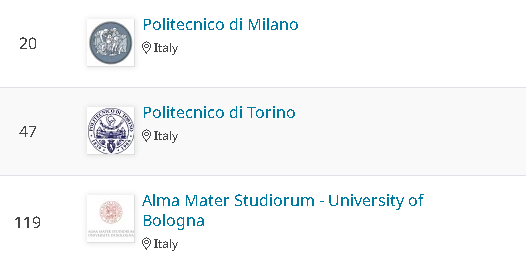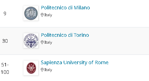 通过排名可以看到清北复依旧稳居国内前三,米兰理工依旧稳居意大利第一。虽然意大利的院校整体排名没有特别靠前的,这几年意大利大部分院校的排名都在不断上升。
