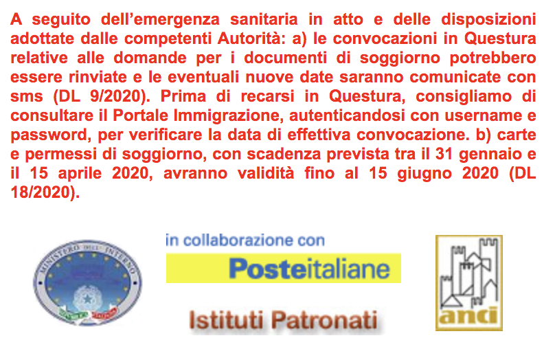 请注意,意大利内务部近日已确定,持有到期居留的外国人,根据意大利有关延期规定的法律(2020年8月31日,称作意大利医疗法的D.L.18/2020法令,其第103条,第2段的规定),可自动延期,由于新型冠状病毒严重的疫情而采取国家紧急状态的规定,他们可以因为工作的紧急原因再次进入意大利,无需备有再次入境签证。