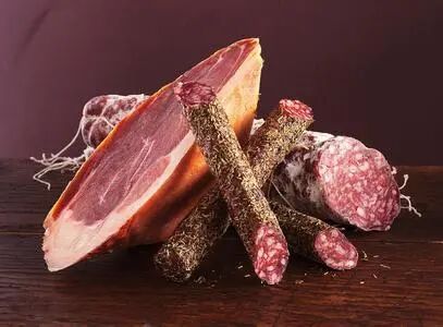 意大利火腿又称帕尔马生火腿,帕尔马生火腿是当地人引以为豪的特产之一,之所以称之为生火腿,因为她在成熟过程中并没有经过任何的加热,并且吃之前也不用经过人工加热就可以吃的火腿。她在长达一年以上的发酵风干过程中,已将微生物杀死, 并且完好地保留了猪肉中的各种维生素, 是老少皆宜的食品。在帕尔马地区的夏天,人们通常喜欢这样的吃法:帕尔马生火腿味道鲜美,咸中带甜, 因此配上蜜瓜更能突出她的甜味。上好的帕尔玛火腿至少要有9公斤以上,色泽呈暗红,切片后有透视感,带云石纹理的脂肪,嗅起来有陈年的肉香及烟熏的气味,入口味道咸香,脂肪能在口中溶解,有回味。虽然用机器切火腿方便省时,不过切得的火腿却不能做到由刀锋配合力度以达到的效果,所以传统的餐厅,桌上总会用木架子架着一只泛着油黄的帕尔玛火腿,由专人仔细地用细长的尖刀手工将火腿切成薄片。切出来的火腿薄而半透明,完整,不断裂,表面稍有凹凸的火腿,吃起来反而更有质感。许多意大利餐厅把切火腿作为一种精彩的表演,