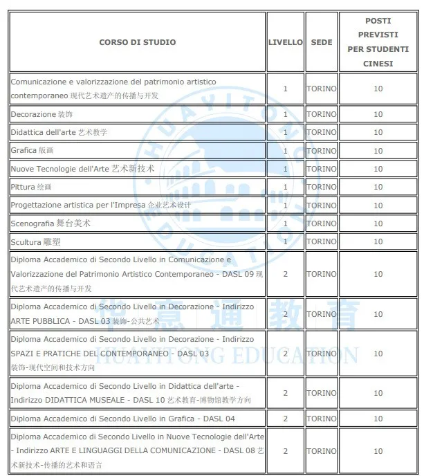 注意:意大利各个大学的各个专业针对于国际生或者计划生都是有名额限制的。