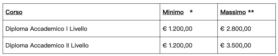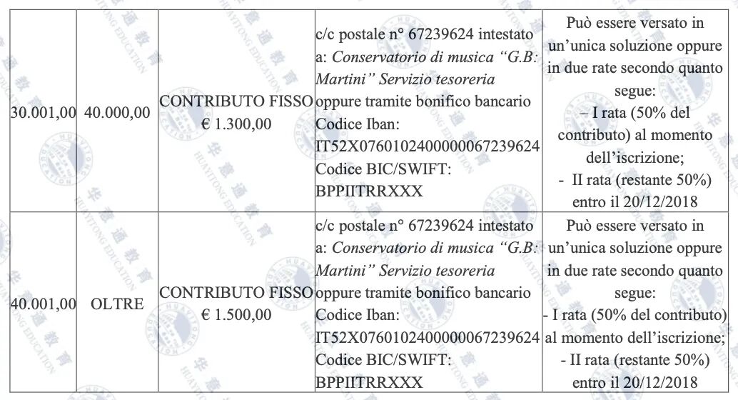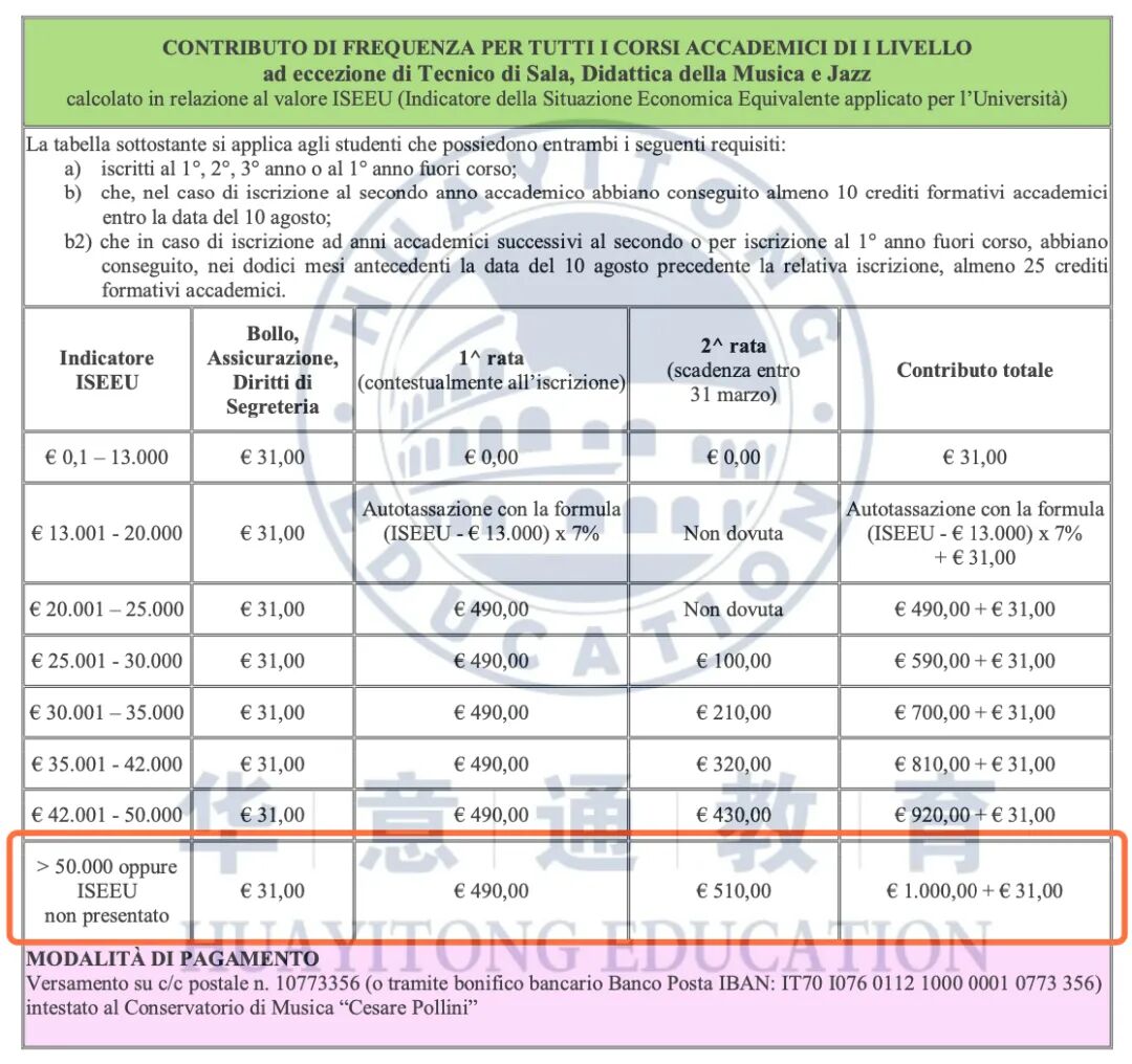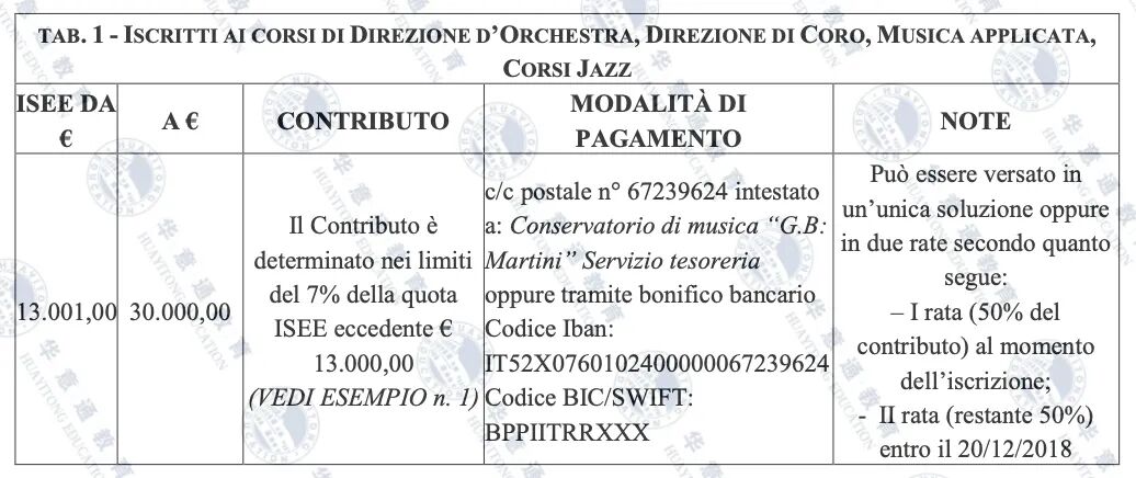 先说一下,意大利音乐学院的注册费其实是和家庭收入挂钩的,就是我们经常说的ISEE值。家庭收入低的同学要交的注册费也低,如果你们看过音乐学院注册费网页的话,你们就会发现同一个专业交的注册费不一样,就是这个原因。