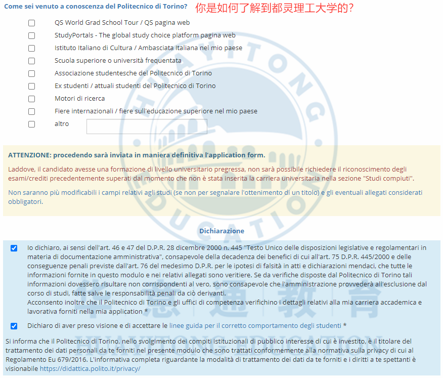 都灵理工大学的线上报考流程究竟是怎样的?怎样选择自己要报考的专业及线上考试的时间? 需要提交的相关材料及语言证书是什么?还有什么注意事项?看下面这篇文章就够了!如果还有不清楚的尽管私信我!!