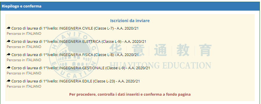 继续点击'Inserisci'完善自己的高中信息。都理的系统会记录部分中国高中的院校信息。如果有的可以直接选择。没有的就自己填充如下面点击'Procedi'进行保存就好。