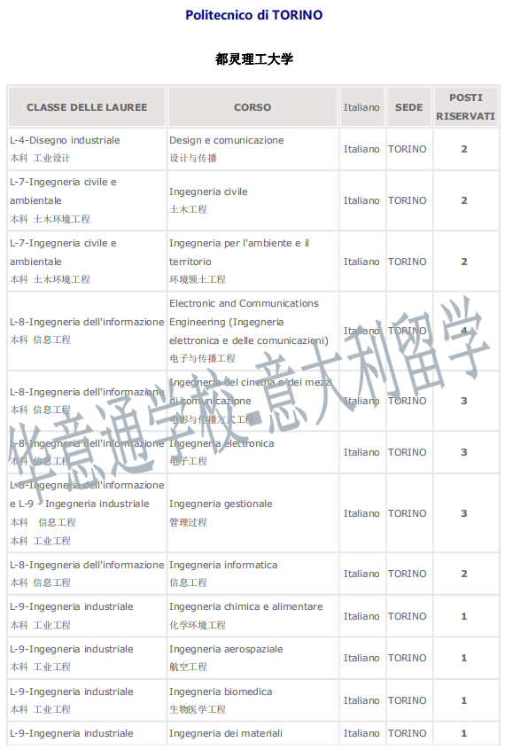 TIL-I(都灵理工大学工程类专业)、TIL-P(都灵理工大学领土与城市规划专业)、TIL-D(都灵理工大学设计与视觉传达专业)。根据你所报考的专业在'TIL'部分可以直接看到考试时间的安排以及每一轮考试剩余的名额。下面我们给出工程类的入学考试 TIL-I 的时间安排。