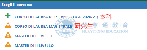 'Scegli il percorso'专业选择部分。出现绿色+号是可以进行选择。如果需要报考研究生专业,在个人学历那里还需要添加本科的学历证明。之后就可以选择研究生的专业了。