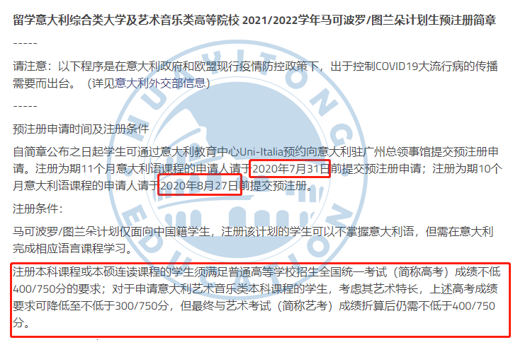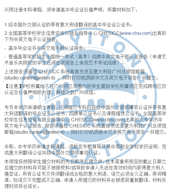 意大利留学|【广州领区】2020国际生、2021/2022计划生预注册简章分析