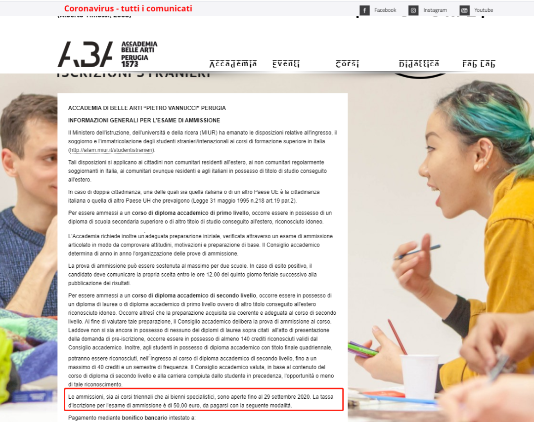 2020-09-25标签: 华意通教育 | 入学考试 | 佩鲁贾美院