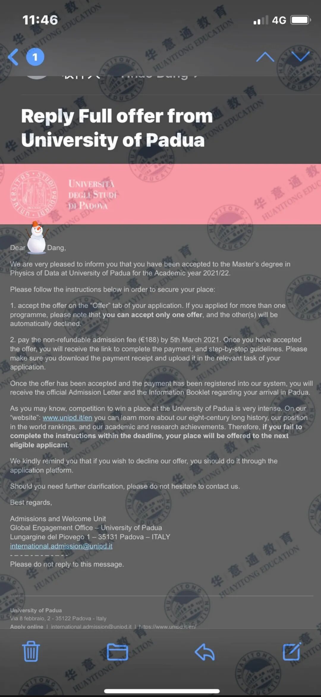 帕多瓦大学offer