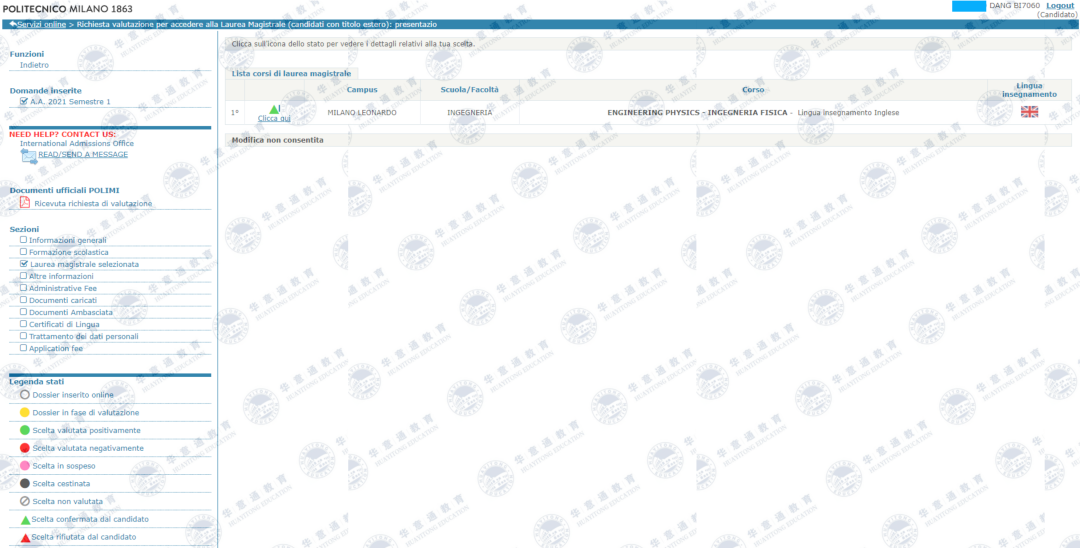 收到的录取:米兰理工大学-物理工程