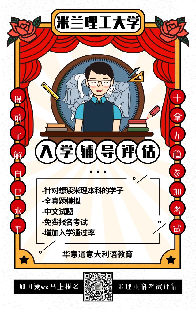小贴士:无论本科还是研究生意大利语手续要达到B2,如果没有B2证书则需要参加学校开设的语言考试,语言测试没有通过不能参加专业测试