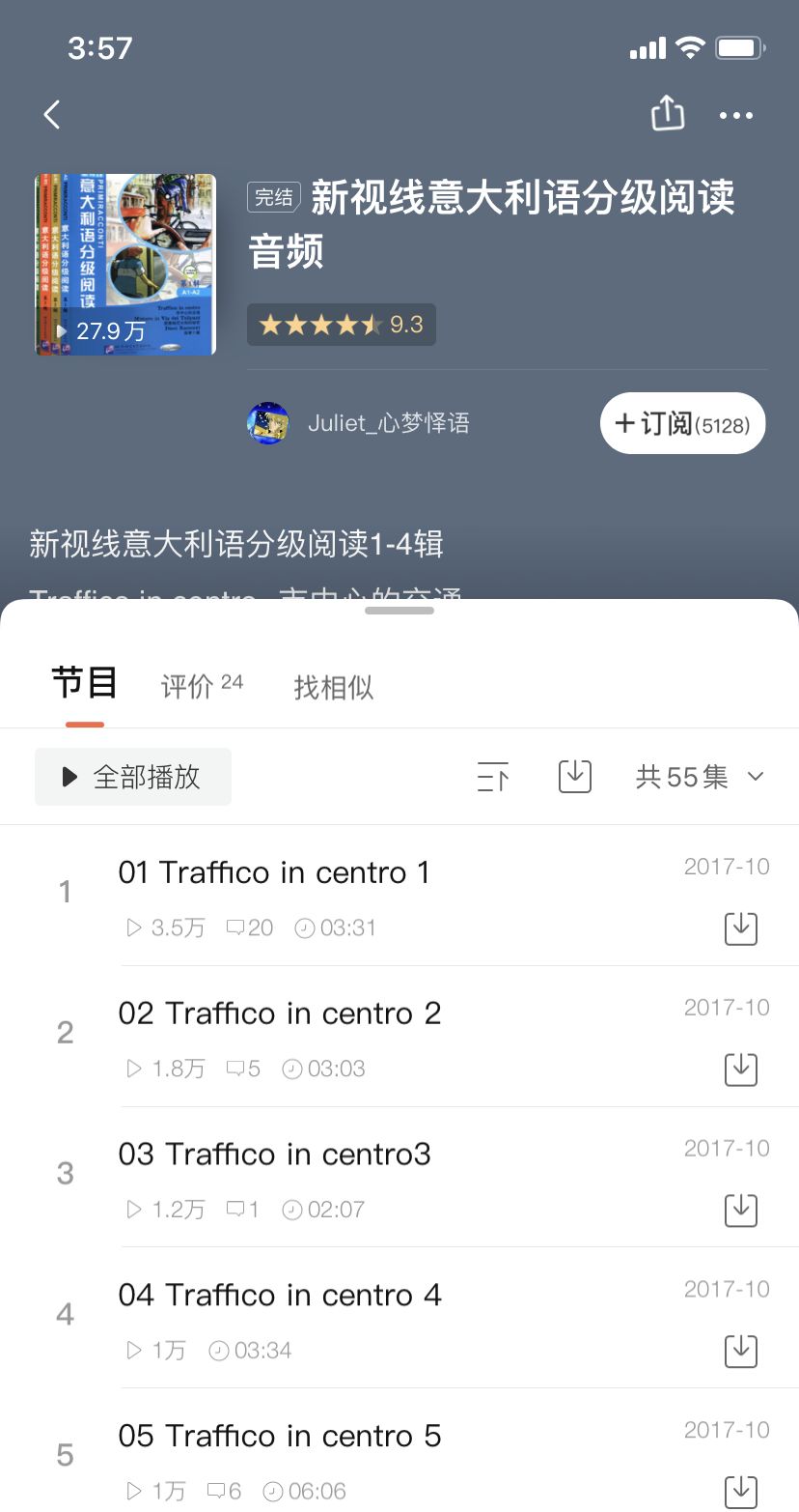 喜马拉雅真是一个神奇的APP,上面啥都有,还有新视线意大利语音频。