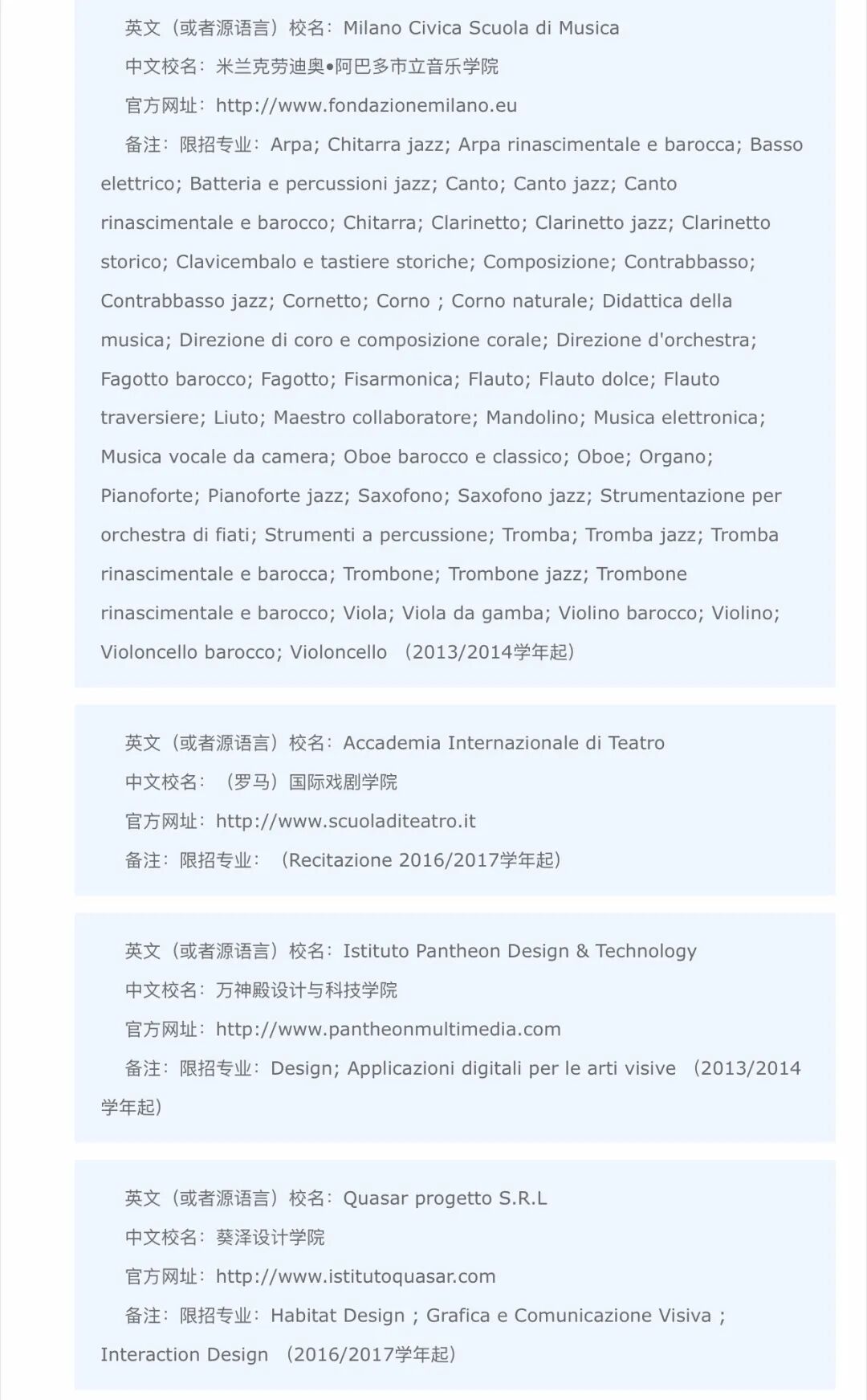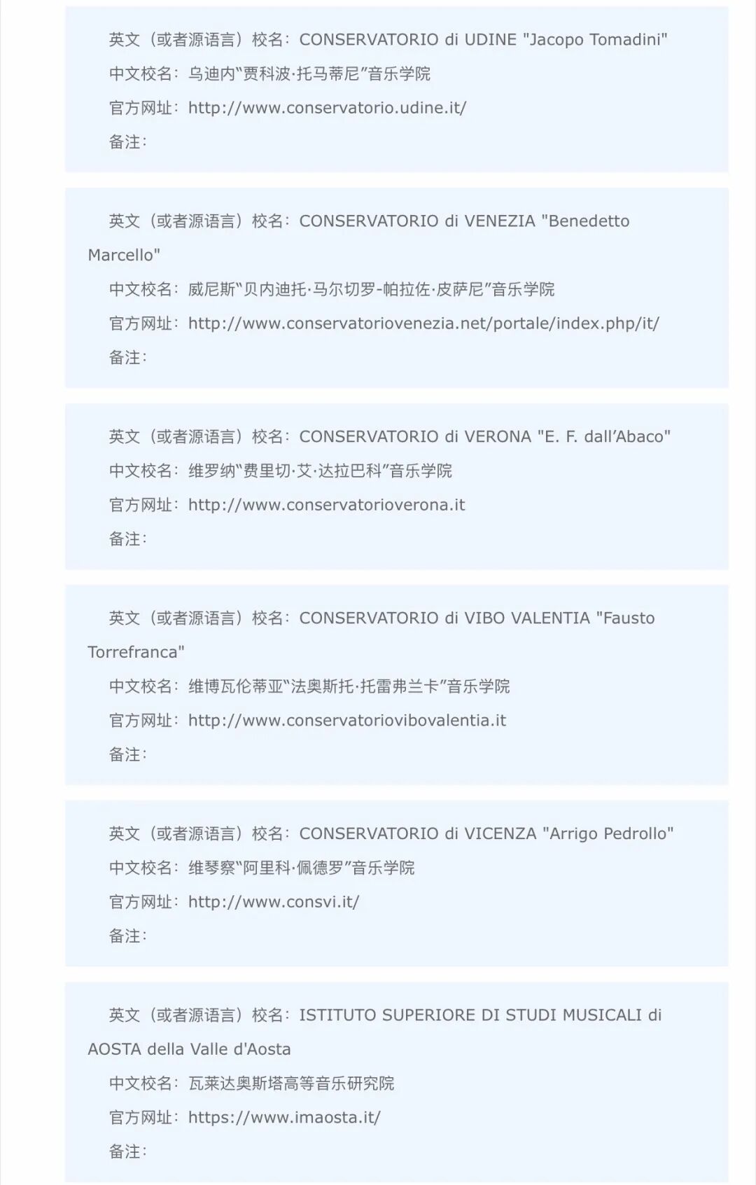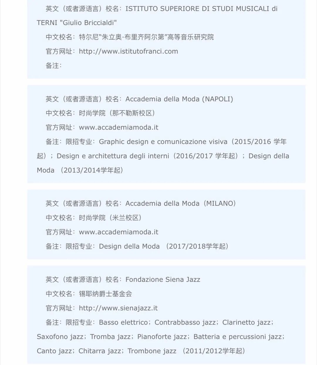 意大利的学校大家其实可以放心,咱们经常念叨的那些个美术学院,综合类大学,音乐学院都是榜上有名的。