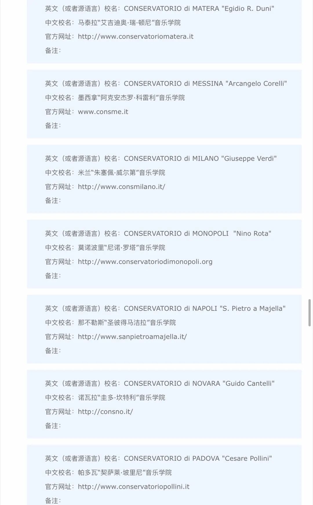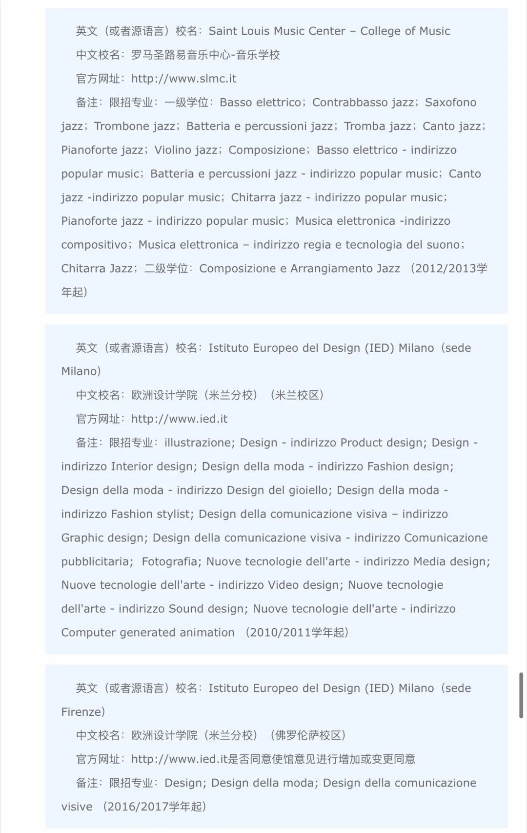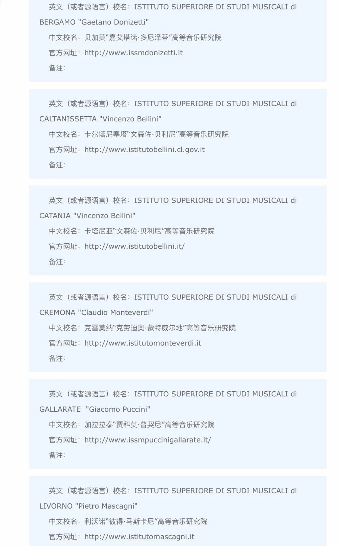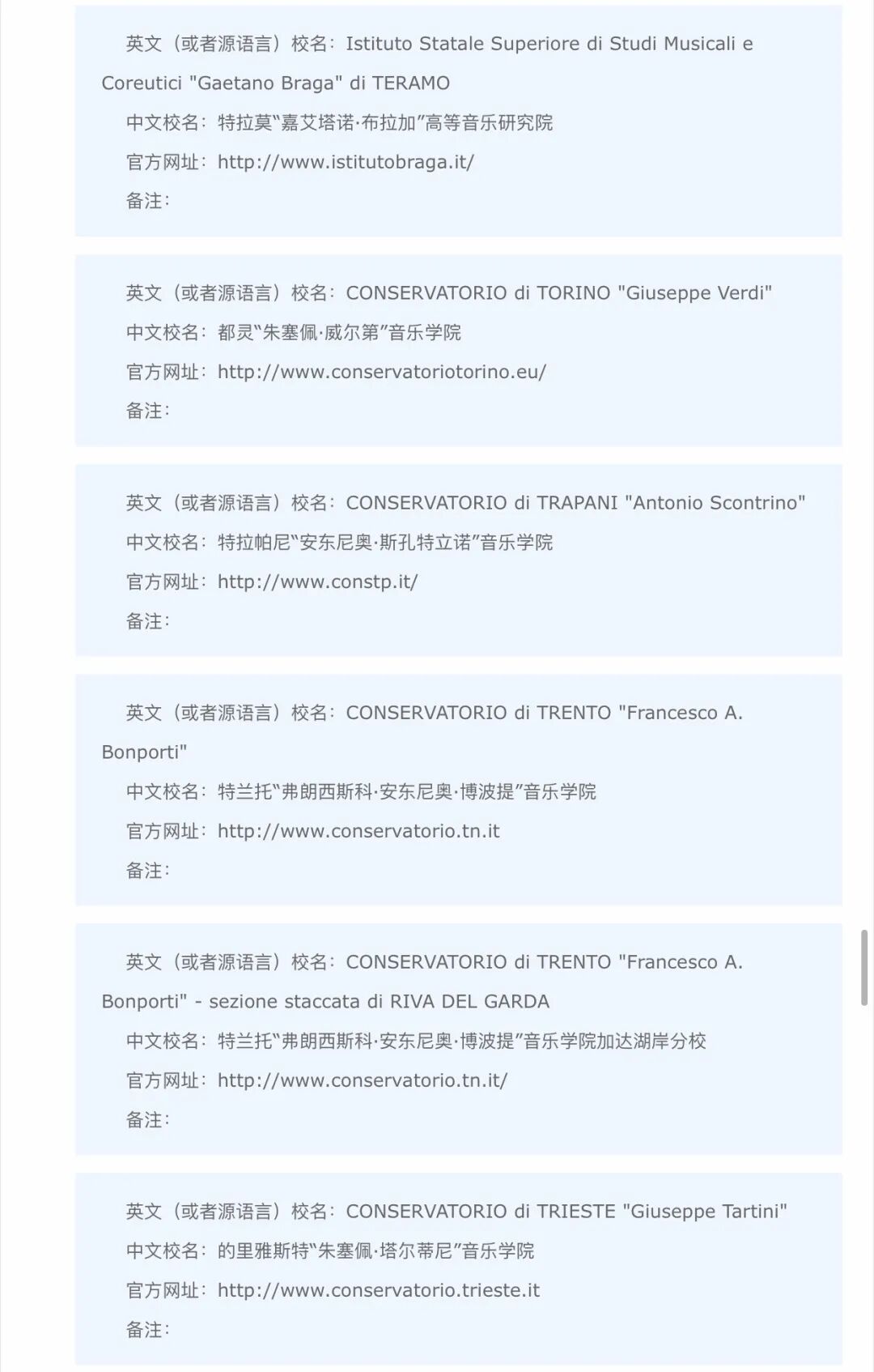 意大利的学校大家其实可以放心,咱们经常念叨的那些个美术学院,综合类大学,音乐学院都是榜上有名的。
