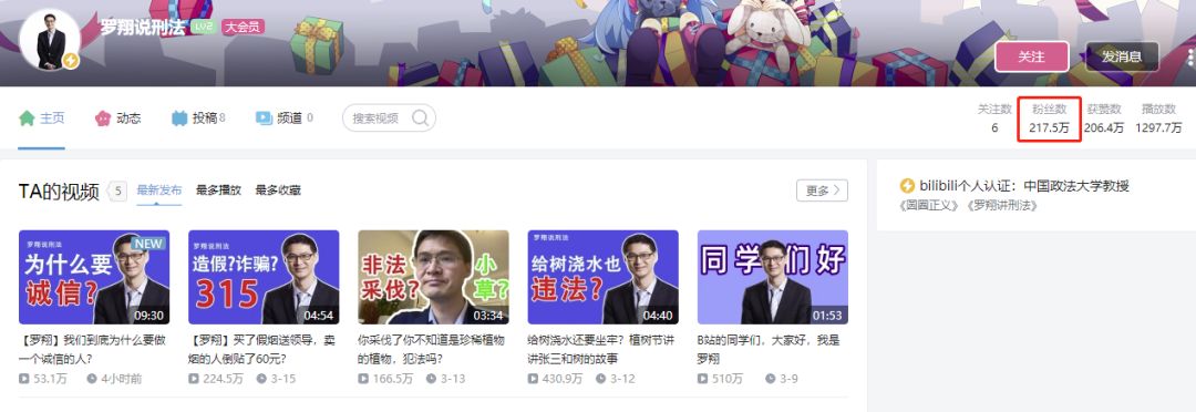 2天就在B站拥有百万粉丝,靠着各种段子加上好玩的案例,把刑法讲的深入浅出每个案子到他嘴里就是一场别开生面的相声,让你根本不想下课。