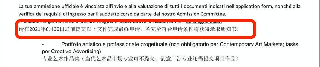 而且有申请研究生的同学是明年毕业,NABA的招生官也非常贴心的在预录取通知书上面标注在2021年前准备好材料即可,等字样。