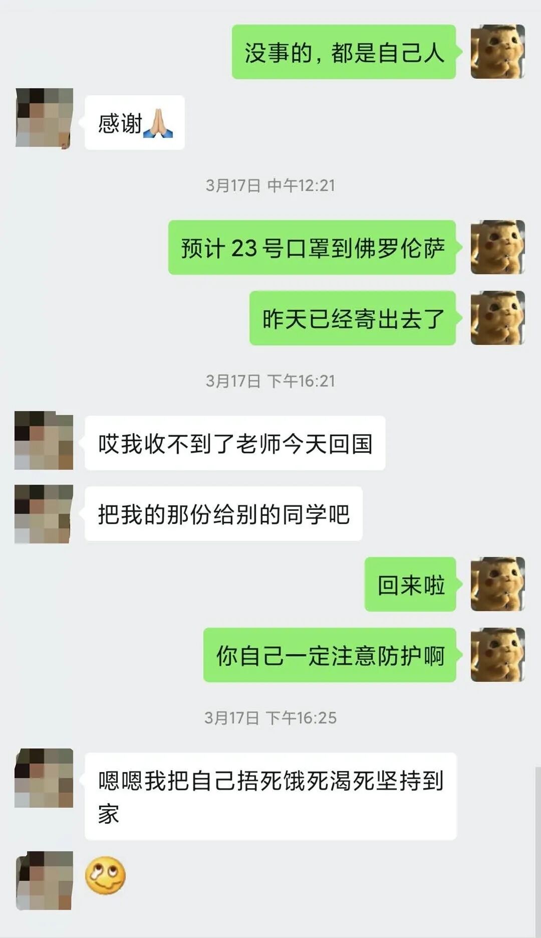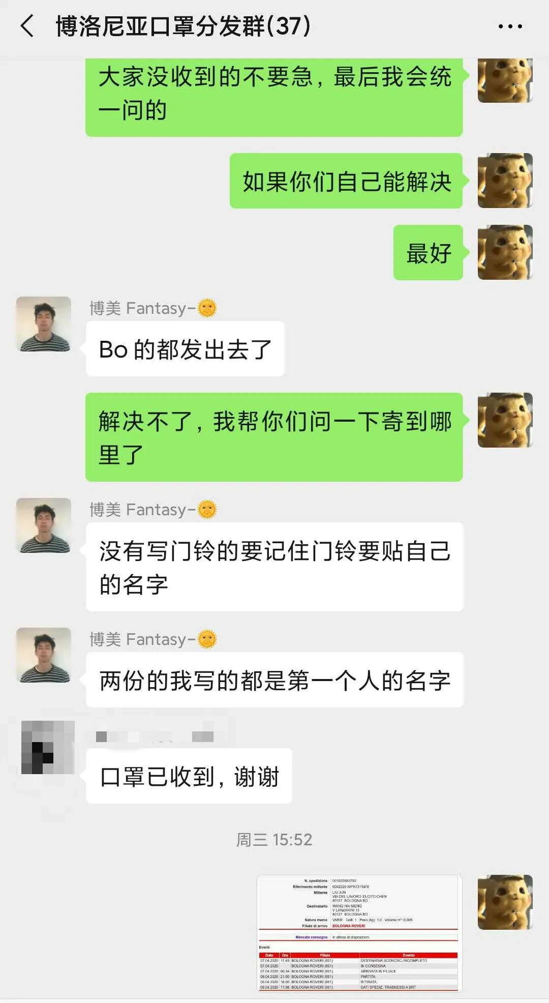 而且那个时候,我们更担心的是口罩能不能顺利到达意大利,每天物流信息从早刷到晚,同学和家长都在等我们的口罩,压力真的超级大。