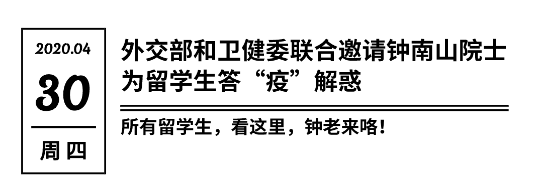 5月4日北京时间晚八点,外交部和卫健委邀请中国工程院院士钟南山与海外留学生视频连线,答“疫”解惑,共度“五四”青年节。