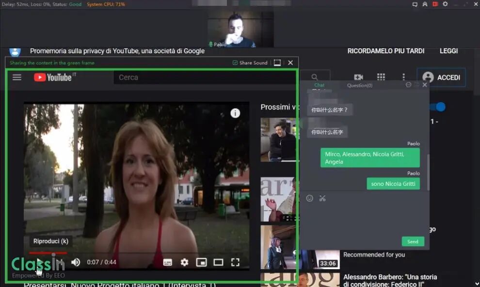 PAOLO老师在教学过程中运用最感兴趣的话题和丰富多彩的教学手段吸引学生们的注意力,课堂内容充实,条理清晰,课堂气氛活跃,学生们学习兴趣浓厚,能愉快的学习、思考、交流!