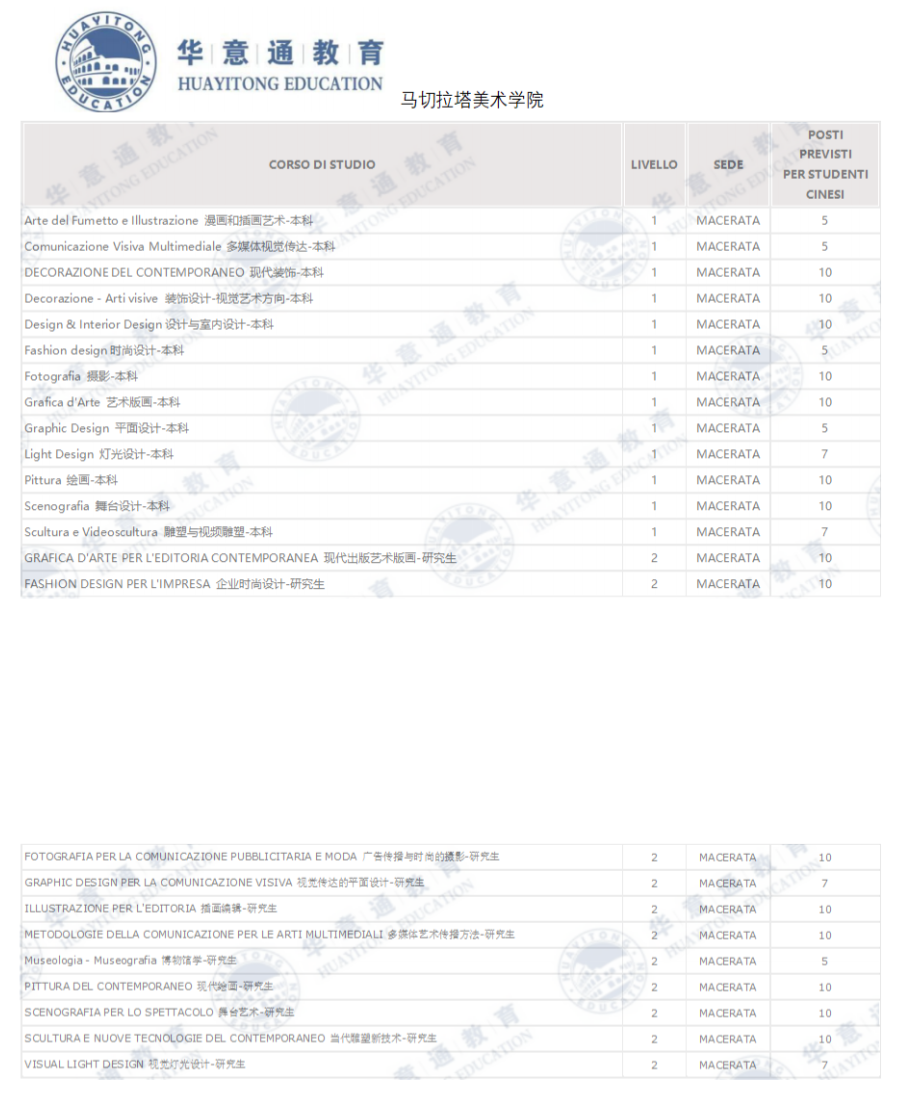 相对于往年来说,今年的马切拉塔美术学院招生的名额增长了一些,所以更有利于我们的申请。