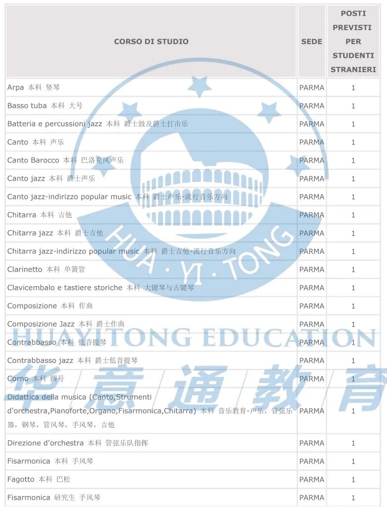 都灵威尔第音乐学院和帕尔马音乐学院的计划生招生简章还没有出,后期出了会陆续公布。