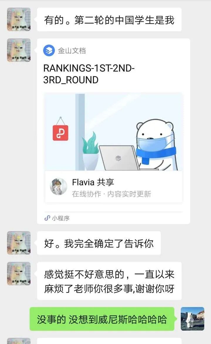 听说她 拿到帕多瓦大学和威尼斯大学的双offer?Flavia不光拿到了两所学校的offer,还是威尼斯大学第二轮录取学生中的唯一的中国学生!拿到了威尼斯大学的双奖!(奖学金5000欧/免注册费2100欧),真的是太棒了!