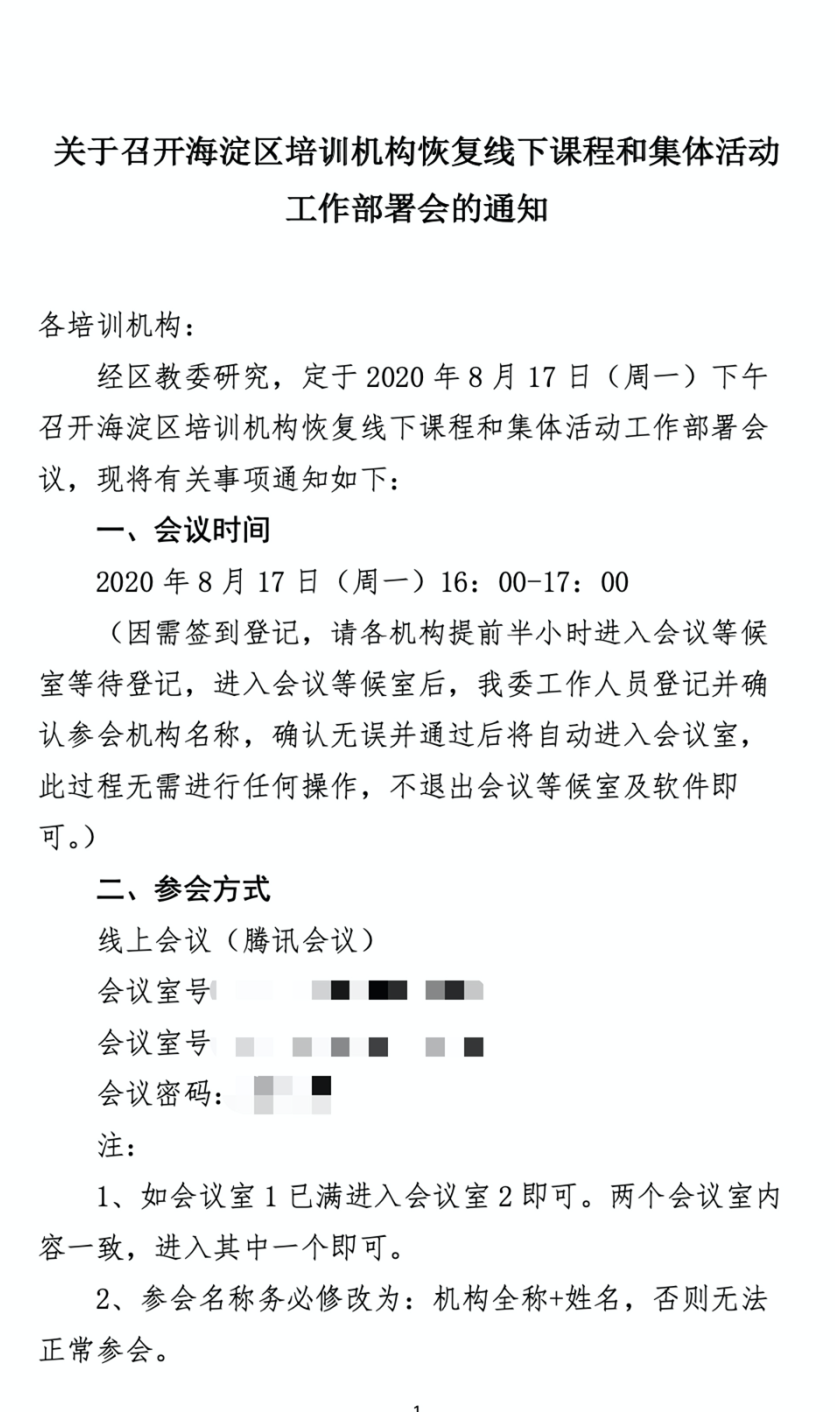关于召开海淀区培训机构恢复线下课程和集体活动工作部署会的通知