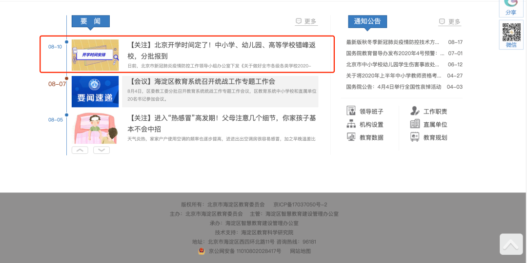 海淀区教委的官网放的又是什么?(框出来的就是和上面的红头文件同样内容的一个通知)